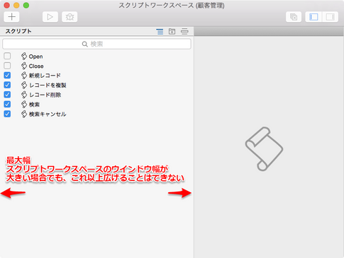 スクリプトワークスペース上でスクリプトパネルの表示幅を変えることができますが、その最大サイズが大きくなりました。
